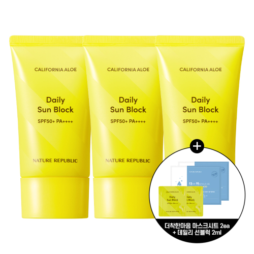 [3개] 캘리포니아 알로에 데일리 선블럭 SPF50+ PA++++(+데일리선블럭 2ml,더착한 마스크 2매 증정)